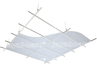 Jayakustik adalah panel plafon akustik gypsum dengan kombinasi finishing cat dan perforasi.